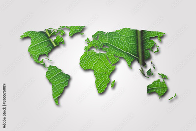 Eco world map made of green leaves, concept ecology. Environment day.