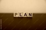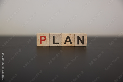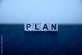 2025 Happy New year banner background. 2025 year numbers with target icon and "PLAN", text on wood cube blocks, isolated on desk and white background. Business planning, development and goals concept.