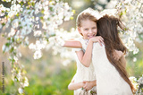 Portrait of little girls sisters in spring