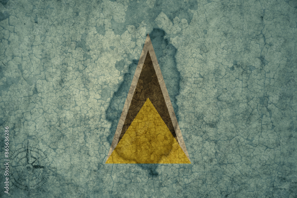 map and flag of saint lucia on a old vintage crack paper background .