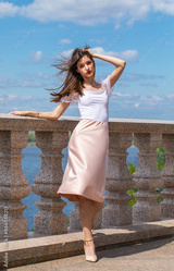 Full body portrait of a young beautiful brunette woman