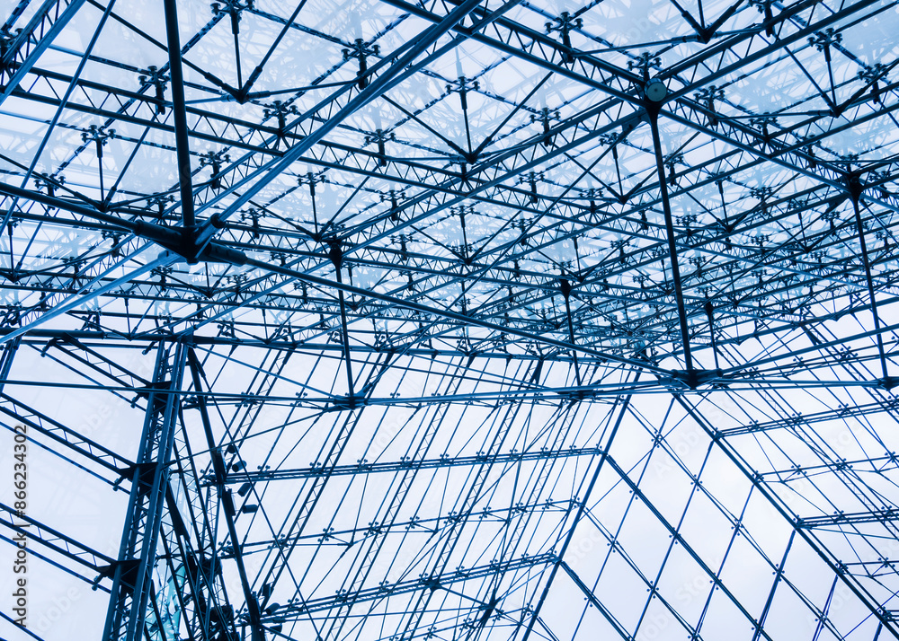 Architecture details Glass roof frame Steel structure modern building Abstract background