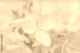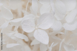 Hortensia hydrangea blooming white flowers with fragile petals on blur natural background macro