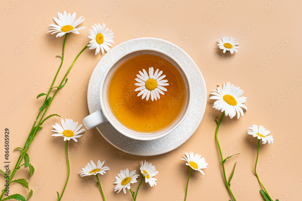 Chamomile tea and chamomile flowers