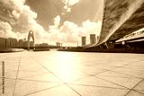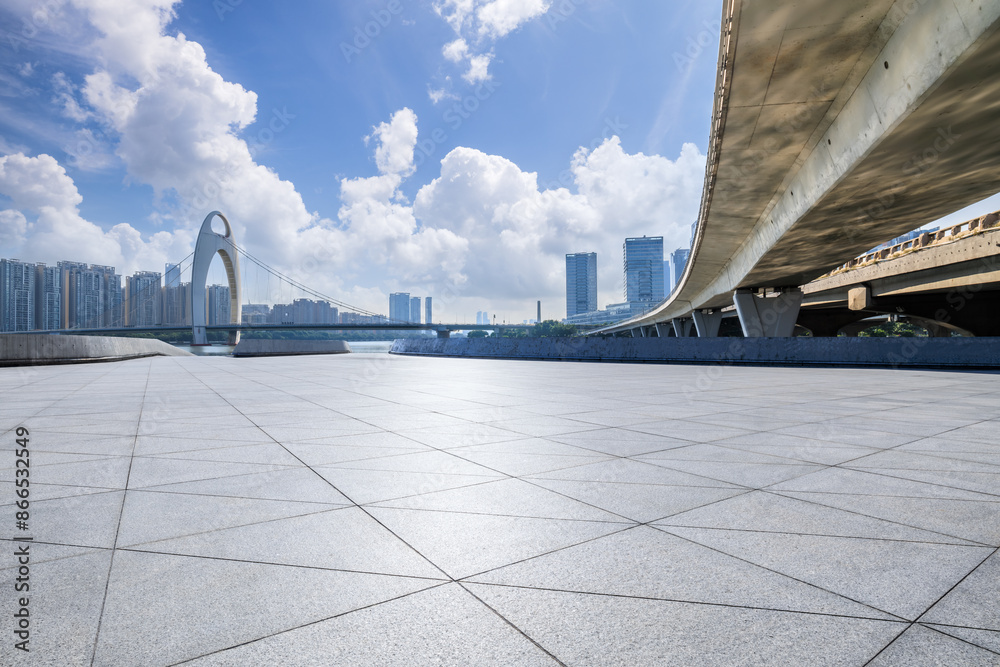 Empty square floor with modern city buildings scenery in Guangzhou. car background.