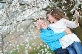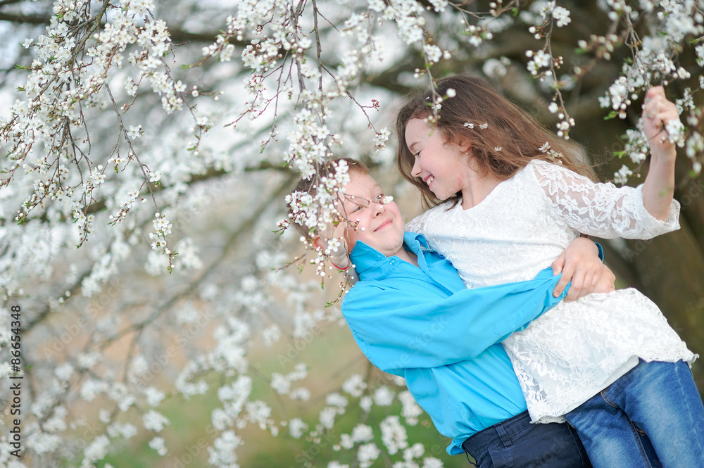 Portrait of a boy and girl in the lush garden