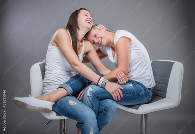 Two beautiful women laughing.