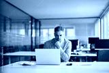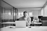 Busy serious middle aged professional business man financial investor, 50 year old senior businessman executive wearing suit using laptop computer working on investment project sitting at office desk.