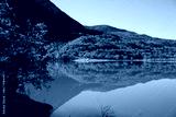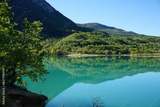 mirror reflection of the mountains in ste croix lake, southern alps, france