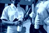 Close-up view of female students holding laptops and thermal bottles. Back to college.
