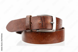 Real natural Leather belt. Leather brown belt on white background, vintage retro leather belt silver buckle