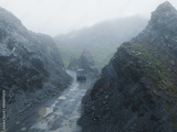 Driving car off road on high altitude mountains 627