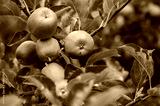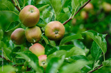 Apples grow on tree in summer