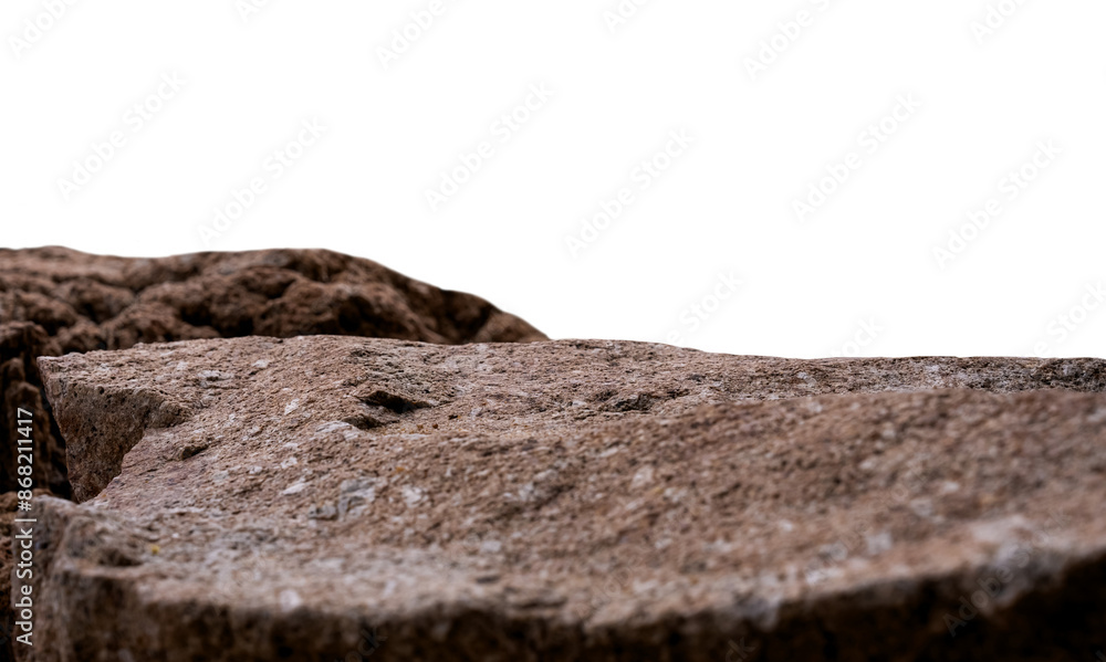 Rock cliff ,Stone Rock podium isolated on white background for a Product Display,Sea Rock Shelf with rough surface texture