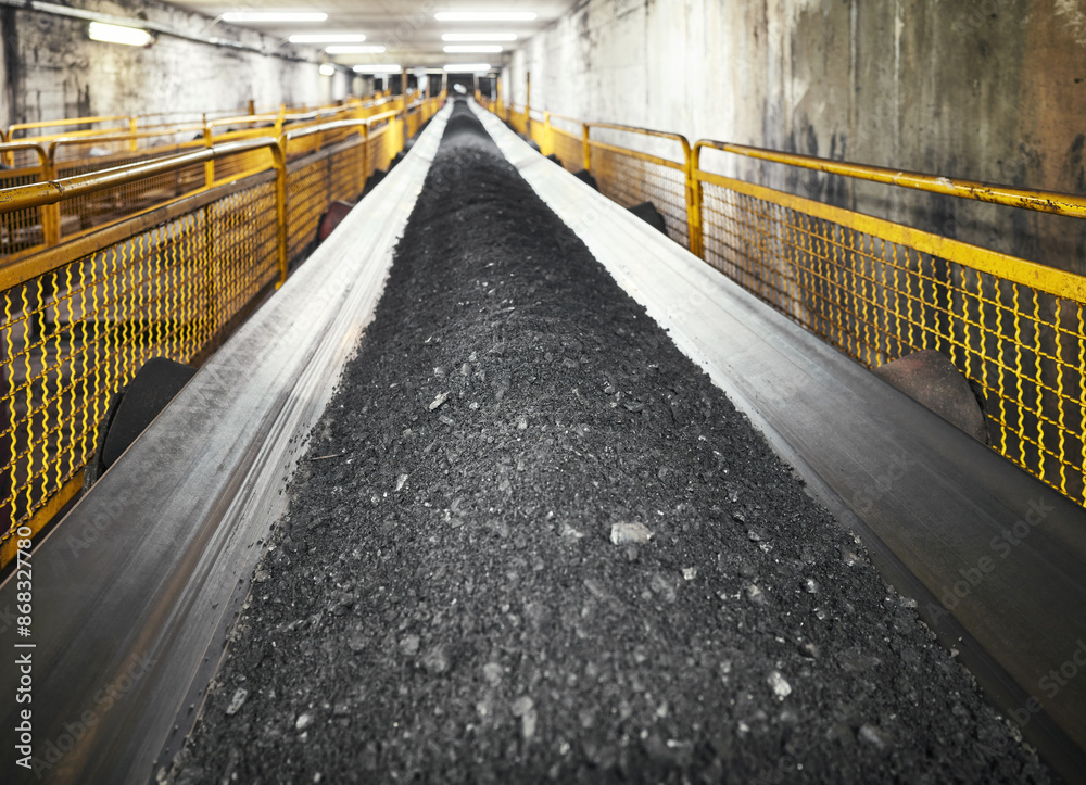 Belt conveyor transporting fine coal in a heating plant, selective mid frame focusing.
