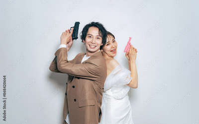拳銃を持つ男女 ブライダルフォト 前撮り