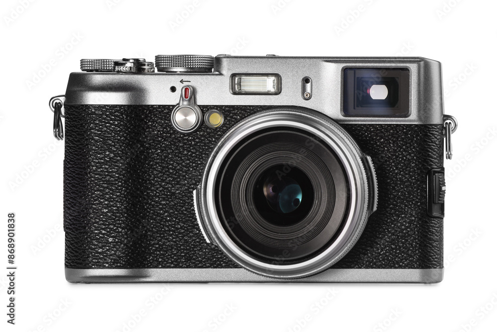 Vintage camera isolated on white. Photographer's equipment