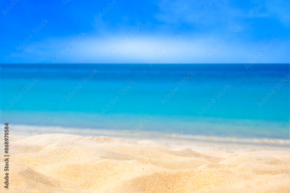 Nature of the beach and sea Summer with sunshine, sandy beaches, clear blue waters sparkling against the blue sky. On an island with good ecology and environment Background for summer vacation concept