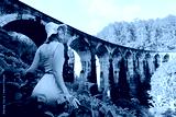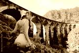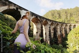 A young woman enjoying the Nine Arch Bridge view traveling in Sri Lanka.