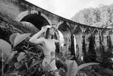 A young woman enjoying the Nine Arch Bridge view traveling in Sri Lanka.