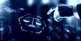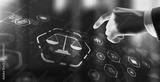 Justice and law concept. Icon Law on virtual screen. Blurred background