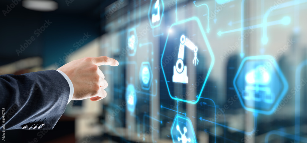 RPA Robotic Process Automation system. Artificial intelligence concept