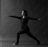 pregnant woman meditates and performs yoga exercise poses on a dark background