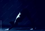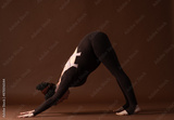 pregnant woman meditates and performs yoga exercise poses on a dark background