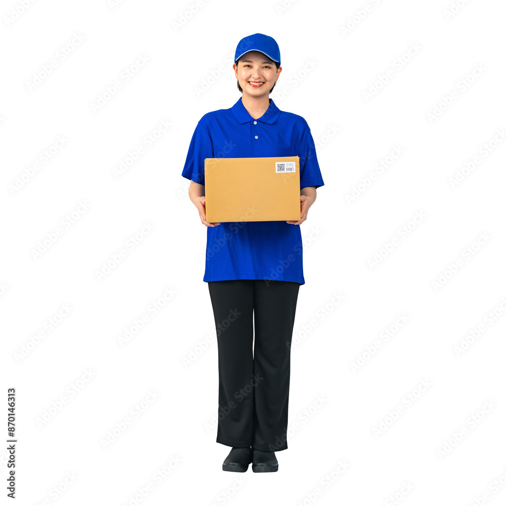 荷物を持つ作業服を着た女性 デリバリースタッフ 配達員 作業員 切り抜き背景透過PNG