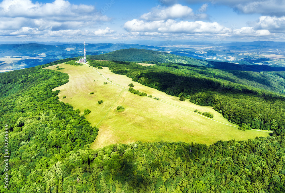 Aerial view of White Carpatians landscape and highest mountain Velka Javorina, Europe, Czech Republic