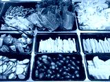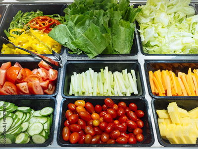 Salad Bar Fresh Vegetables sliced Top view Tomato Carrot Celery
