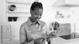 Happy, young African American woman enjoying at home and shopping online on her smartphone