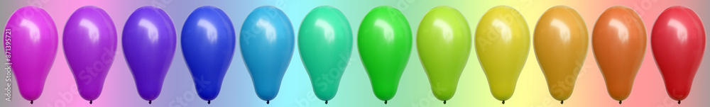 ballons Multicolores sur fond arc-en-ciel