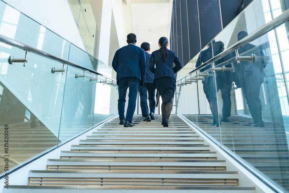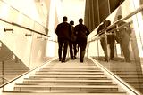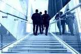A group of multinational business people walking up the stairs
