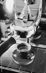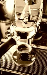 espresso coffee maker Espresso poruing from coffee machine at cafe