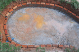 Top view of garden pond construction by brick box, for Koi fish