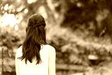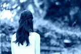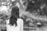 新緑と若い女性の背中