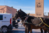 transporting goods around city, loaded traditional horse-drawn cart transporting bags along roads, authentic and lively city life African Marrakech
