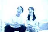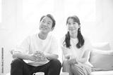 逆光の中見上げる50代の夫婦(カップル)の正面 何かを決める、未来、目標などの見つめるイメージ