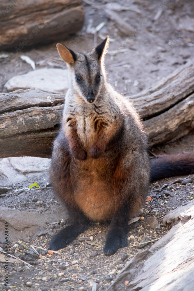 The southern Brush-tailed Rock-wallaby has a characteristic, long, dark tail that is bushier towards the tip.