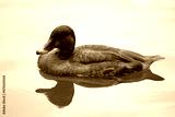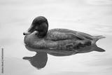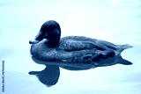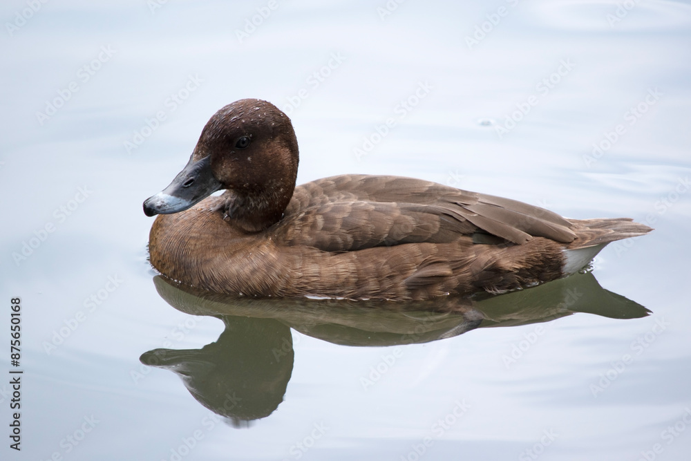 The Australian white-eyed ducks are uniform chocolate-brown with rufous flanks, an irregular white patch on the belly and a white undertail.