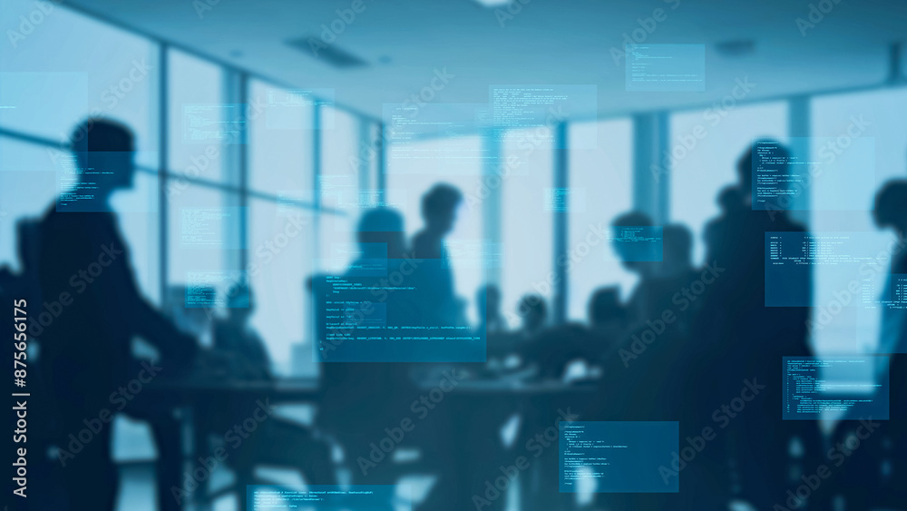 Group of people working in office and digital technology concept. System engineering.