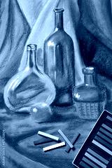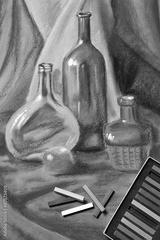 Artists pastels and original pastel drawing of still life.