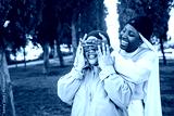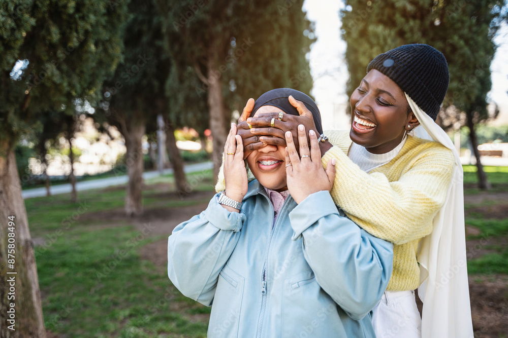 Muslim teenager girl best friends bonding with love and friendship in the city park