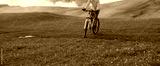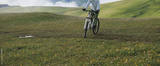 Riding mountain bike on beautiful mountain top