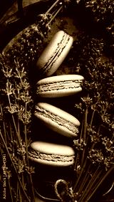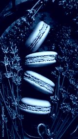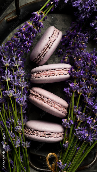 Purple macaroons. A bunch of lavender. Top view.