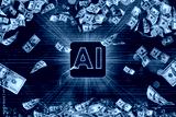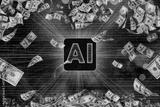 AI, artificial intelligence concept. Money wallpaper background with US dollar bills tornado, whirlwind of dollars hurricane. Flying, levitating american cash. Typhoon of hundreds banknotes