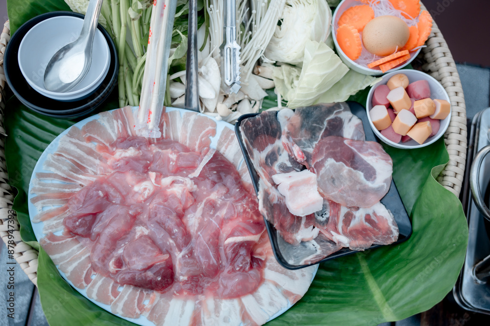 Top viewo of set of Thai barbecue. Traditional Thai BBQ style is famous in Thailand
