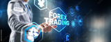 Businessman touching finger on the virtual screen and selecting Forex Trading