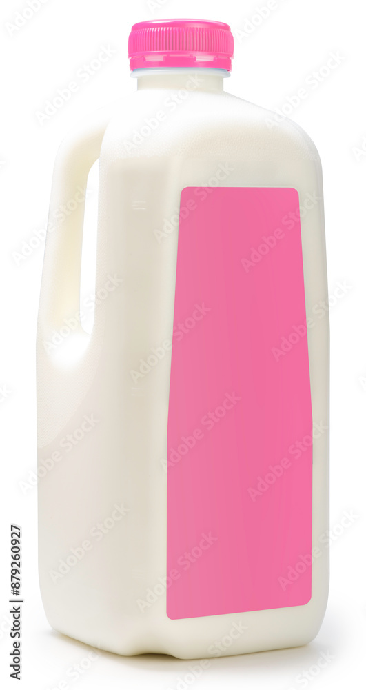 Plastic Milk Bottle isolated on white background, Plastic Milk Bottle with blank label on white background, With clipping path.